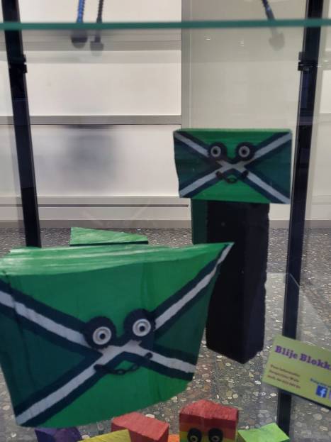 In de vitrines in de centrale hal zijn de ‘Blije Blokkies’ te zien van Jacqueline Wols uit Groenlo. De Blije Blokkies worden van hout gemaakt en daarna geschilderd. Een Blij Blokkie zorgt gegarandeerd voor een grote glimlach, elke dag weer. Goed om te weten: de helft van de opbrengst van de Blije Blokkies wordt gedoneerd aan de CliniClowns.