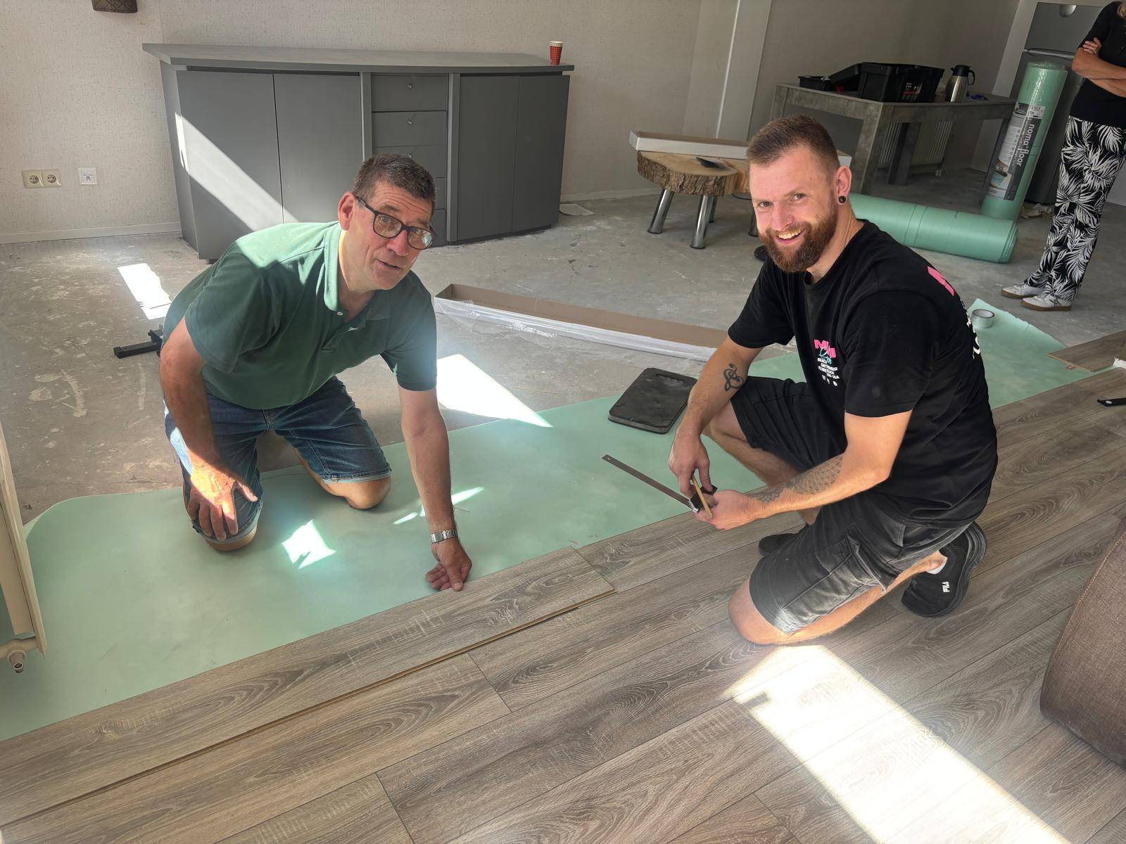 Met de steun van het Wenscomité, Wenters Tegels en Vloeren en het klusteam van HIERZorg mocht ze eind augustus samen met haar begeleider Mirelle een nieuwe pvc-vloer uitzoeken. Henri Betting, eigenaar van Wenters Tegels en Vloeren, reageerde meteen enthousiast en leverde de vloer belangeloos. Het klusteam van HIERZorg zorgde voor de vakkundige plaatsing.